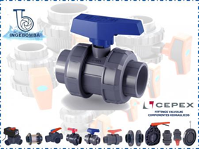 La válvula de bola Cepex de doble unión está fabricada en PVC-U de alta resistencia, ofreciendo máxima durabilidad y seguridad en aplicaciones hidráulicas. Su diseño con doble unión tipo americana permite un fácil desarme y mantenimiento.