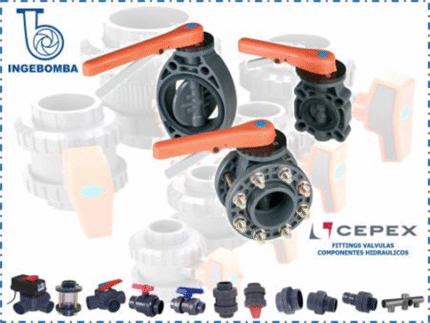 La válvula mariposa Cepex está fabricada en PVC-U de alta resistencia, diseñada para ofrecer gran durabilidad y un excelente rendimiento en la conducción de fluidos. Su sistema de doble brida permite un fácil desarme y mantenimiento.
