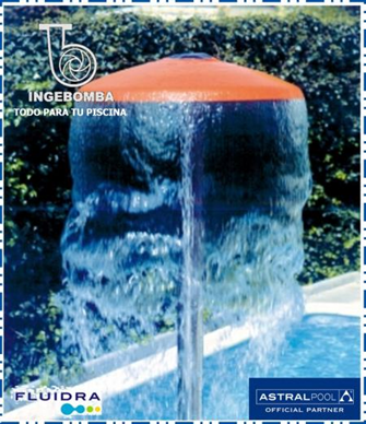 Conjunto decorativo ideal para piscinas, espejos de agua o pequeñas lagunas, que combina agua y luz en un solo sistema.