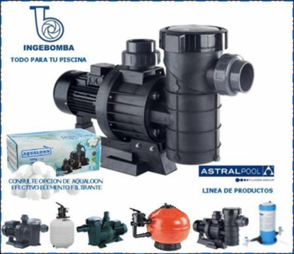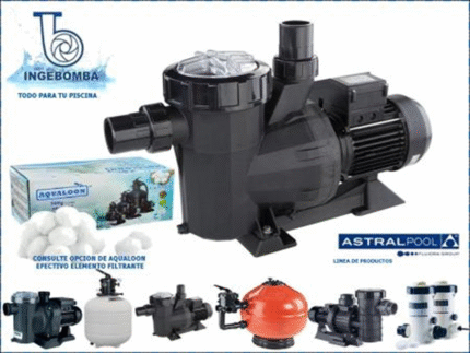 BOMBA AUTOCEBANTE CON PREFILTRO PARA PISCINAS • Caudal: 7,5 m³/h • Presión de trabajo: 8,0 m.c.a. • Motor: 0,5 HP – 220 V – Bajo nivel de ruido • Autoaspirante: Hasta 3,0 m.c.a. • Incluye: Racor de conexiones para 50 mm • Cuerpo hidráulico: En polipropileno de alta calidad • Garantía: Según cláusula del fabricante • Sello mecánico: Especial AISI 316 y óxido de alúmina • Eje del motor: Acero inoxidable • Motor: – Con rodamientos – Debe ser protegida con interruptor guarda motor RETIRO EN TIENDA