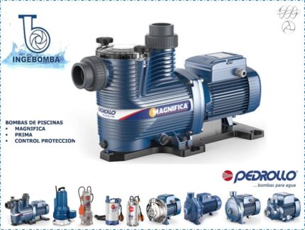 Bomba para filtración de piscinas con prefiltro incorporado, diseñada para recirculación en piscinas, spas, hidromasajes y fuentes ornamentales.