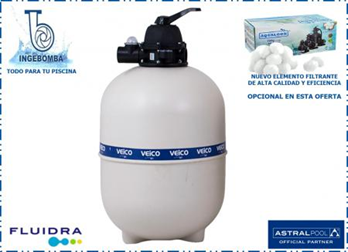FILTRO DE ARENA PARA PISCINAS • Fabricado en polímeros de una sola pieza, de alta resistencia. • Caudal: 7,0 m³/h (a filtro limpio) • Presión de trabajo nominal: 7 m.c.a. • Área filtrante: 0,14 m² • Velocidad de filtración: 50 m³/m²/hora • Carga de lecho filtrante: 60 kg • Válvula de control multipuerto de 6 posiciones • Conexión: 1½” H.I. • Lecho filtrante recomendado: AQUALOON Elemento de gran calidad para una filtración eficiente. Ahorra agua al no requerir lavados frecuentes. Filtra sedimentos de hasta 3 micras. (AQUALOON se vende por separado) RETIRO EN TIENDA