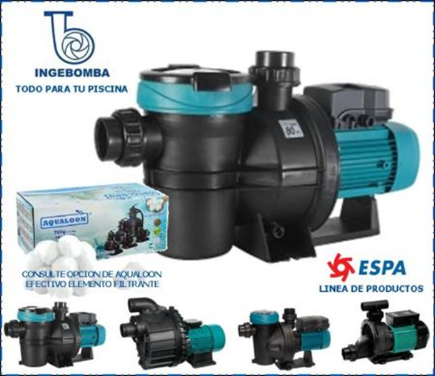 BOMBA AUTOCEBANTE CON PREFILTRO PARA PISCINAS • Caudal: 16,8 m³/h • Presión de trabajo: 9,0 m.c.a. • Motor: 1,0 HP – 220 V – Bajo nivel de ruido 65 dB • Autoaspirante: Hasta 4 m.c.a. • Incluye: Racor de conexiones para 63 x 50 mm • Compatible con: Agua salada hasta 7 g/L • Cuerpo hidráulico: En tecnopolímeros de alta calidad • Garantía: Según cláusula del fabricante • Sello mecánico: Especial en AISI 316 • Eje motor: Acero inoxidable AISI 431 • Rodamientos: Hasta 160 °C • Protector termoamperimétrico incorporado RETIRO EN TIENDA