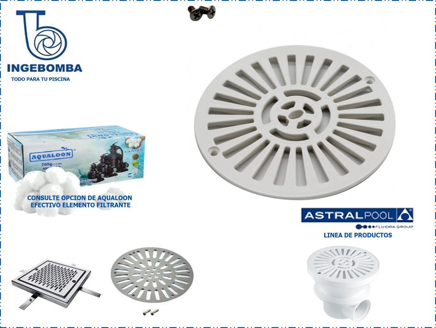 Rejilla de reemplazo en ABS blanca para modelos de drenaje 01467 y 27837, utilizada en sistemas de aspiración para piscinas de hormigón. Proporciona durabilidad y resistencia química superior frente a condiciones exigentes.
