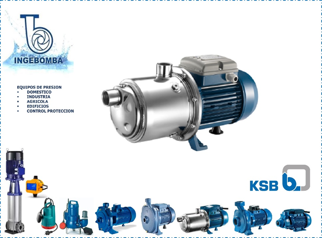 Bomba centrífuga con parte hidráulica en acero inoxidable 304, diseñada para el suministro eficiente de aguas limpias en aplicaciones domésticas, de riego o abastecimiento.