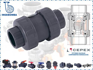 La válvula de muelle antirretorno Cepex está fabricada en PVC-U de alta resistencia, ofreciendo máxima seguridad y durabilidad en instalaciones hidráulicas. Su sistema de doble unión tipo americana permite un fácil desarme para mantenimiento.